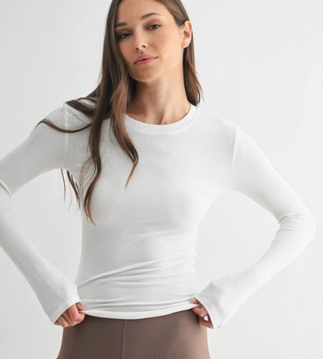 Essential Long-Sleeved Micro-Ribbed Athleisure Top-White