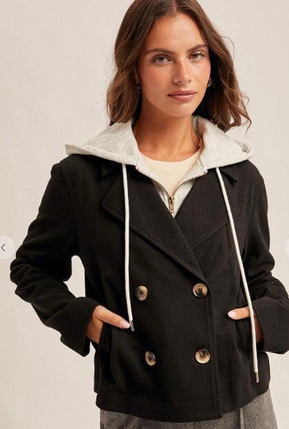 Sherpa Fleece Hooded Vest with Faux Suede Inner-ECRU