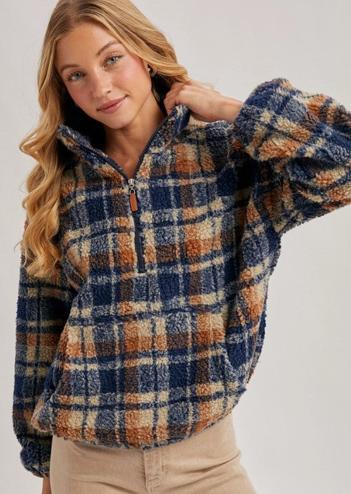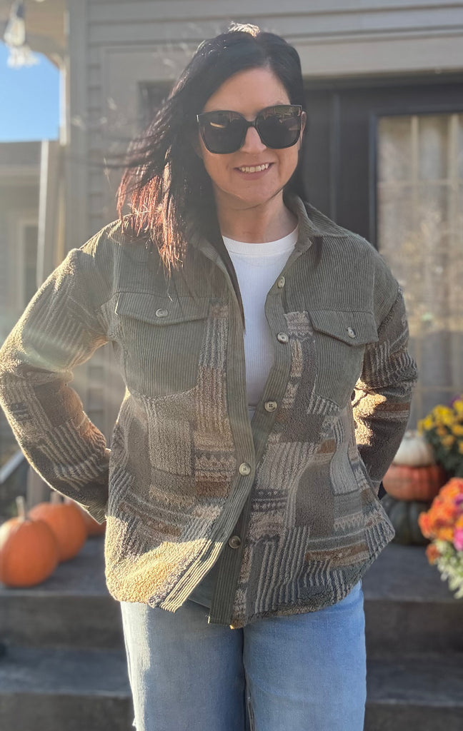 Button Down Plaid Fleece Lined Hoodie Shirt Jacket-CARAMEL