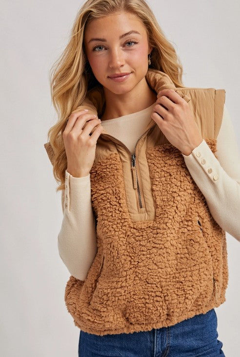 Faux Suede with Faux Shearling Lining Trim Vest-COCO