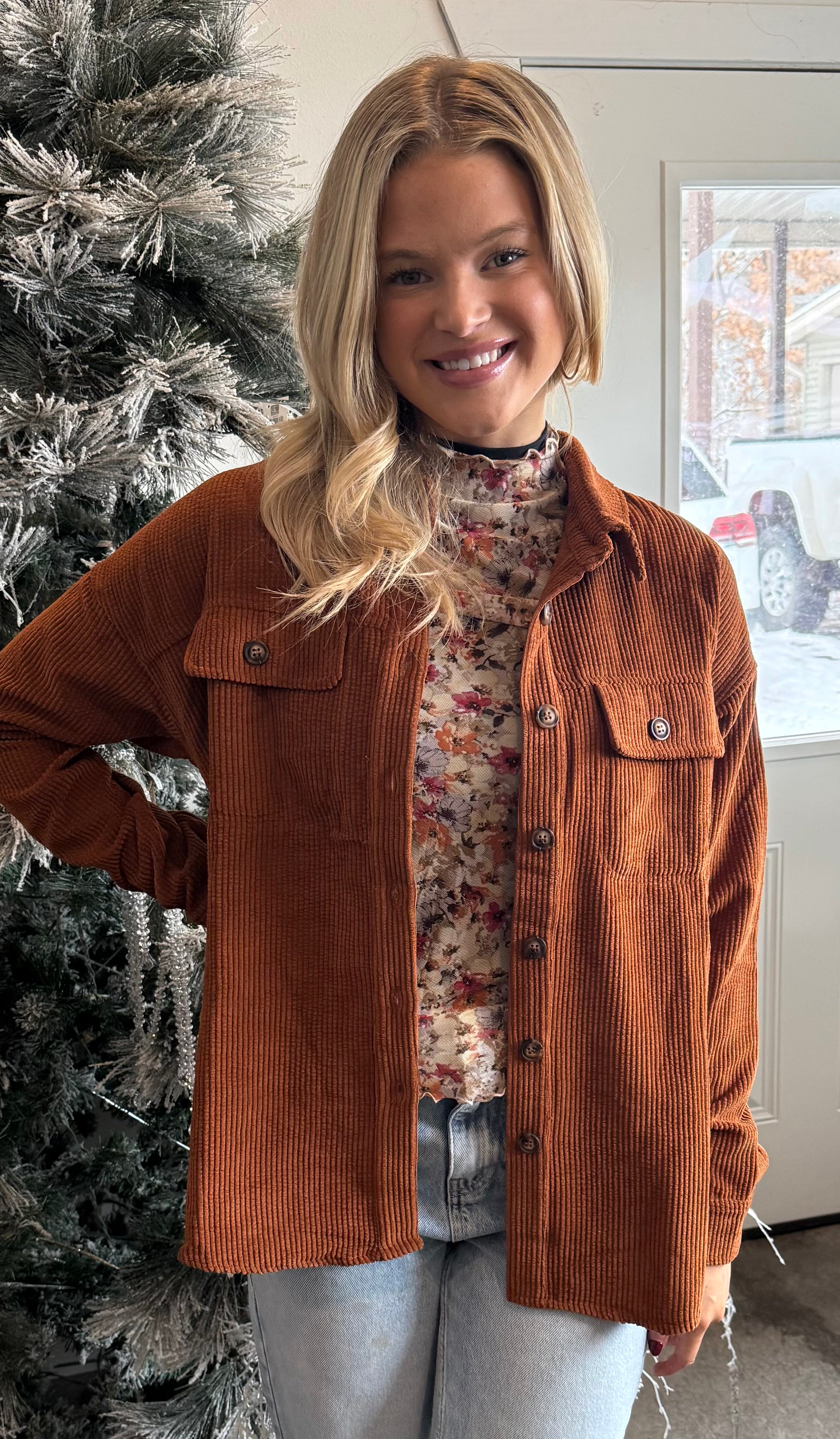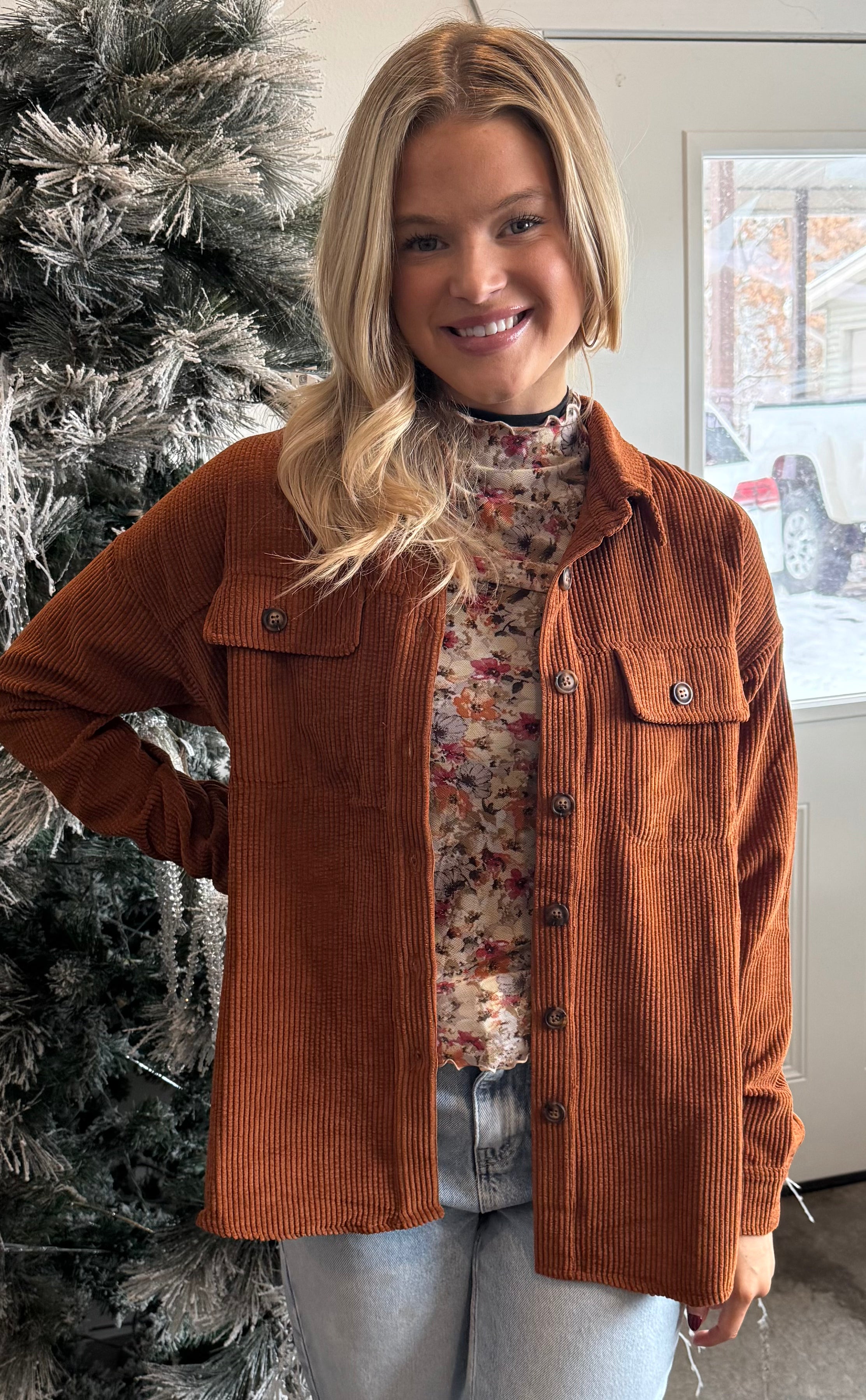 Meet your new throw-on-and-go favorite. This rust corduroy button-down shacket from our customer-trusted vendor Doe & Rae is that perfect in-between layer you’ll reach for again and again.