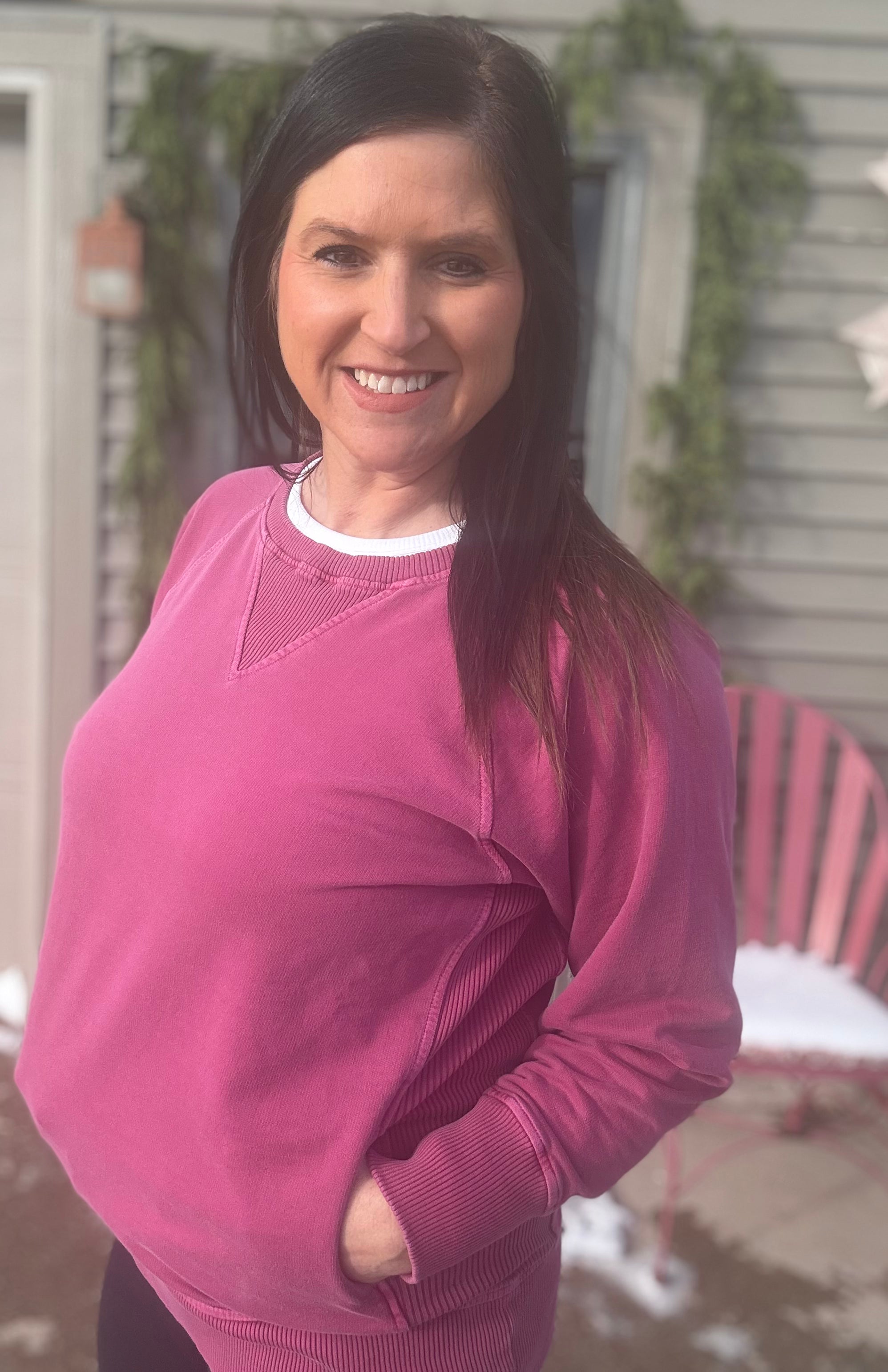 Pigment Dyed French Terry Pullover With Pockets-WINE
