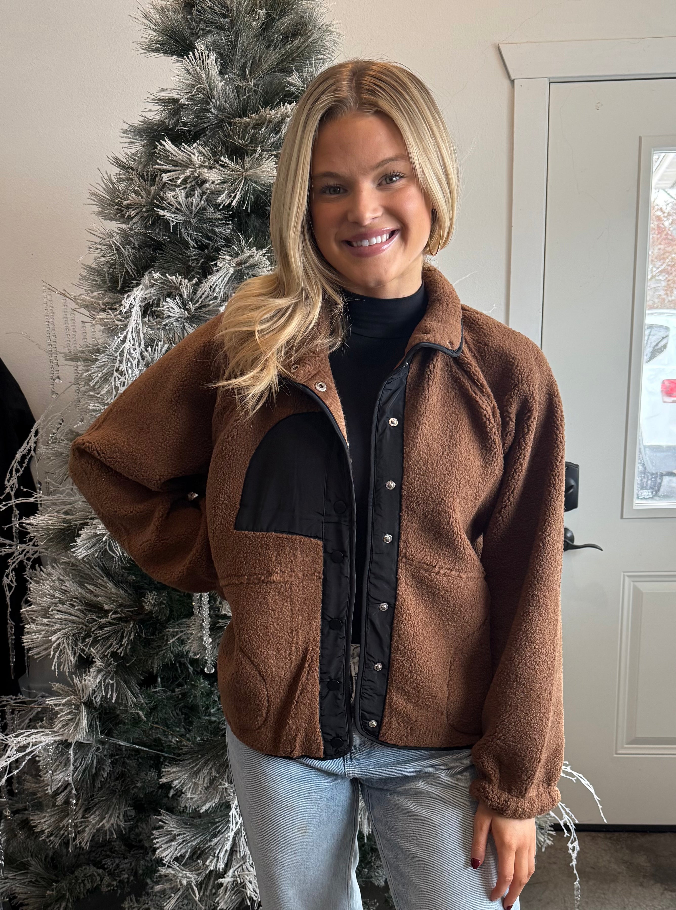 Chocolate & Black Colorblock Snap Fleece Jacket
